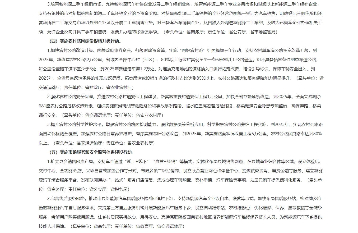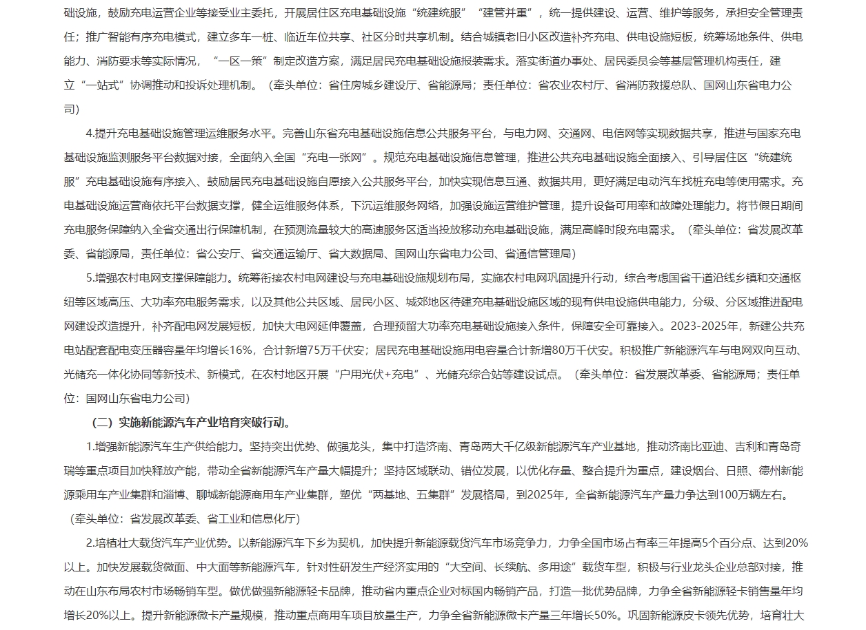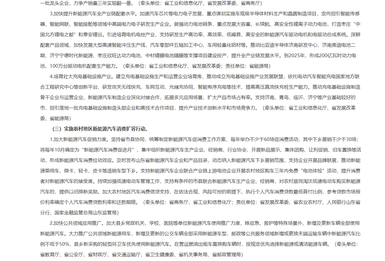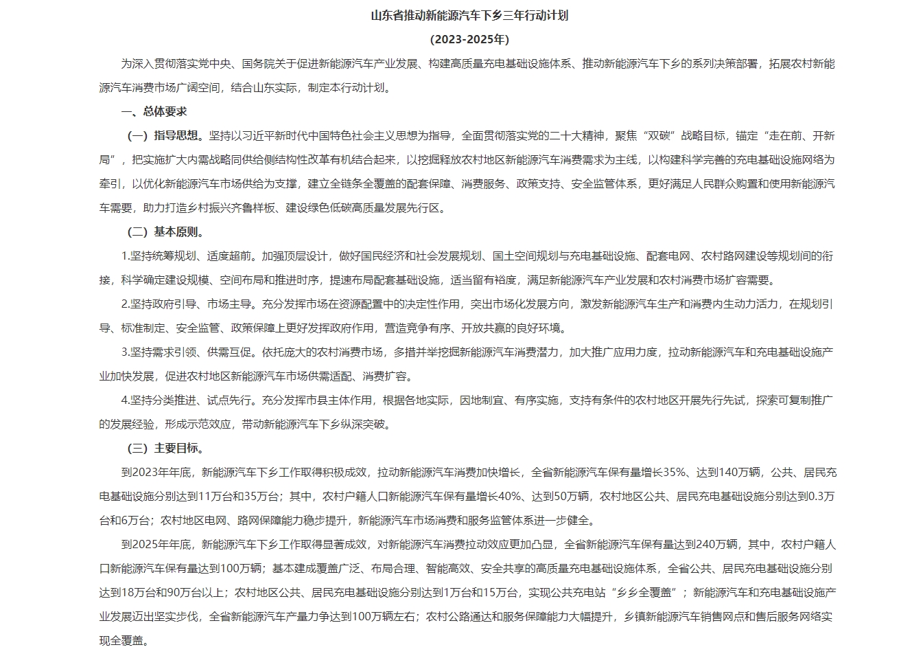 山东省推动新能源汽车下乡三年行动计划(2023-2025年)